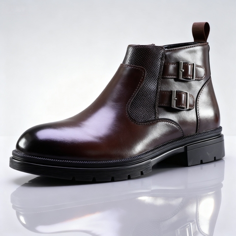 Bottes Chelsea pour hommes Brogue Derby Oxford Pointed Toe High-Mid Top Slip Ankle Short Boots PU Upper